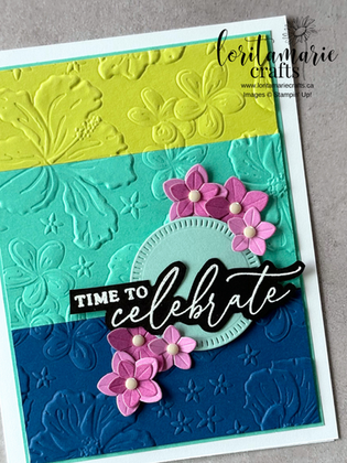 This second colour combo was a super fun one to try out. Instead of the big flowers, I focused on the embossing folder and the cut tiny flowers.