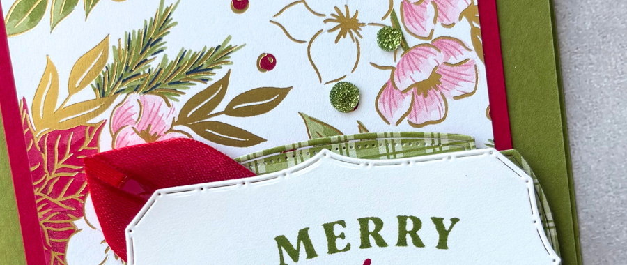 Here we're stepping up the card a bit by using the DSP and bringing in the coordinating 'Christmas Greenery' Dies. You can cut these beautiful images right out of the DSP!