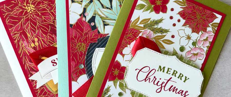 Each card showcases a different pattern of DSP and it's own Christmas colour combo. You can mix & match the colours in the DSP to create your favourite combinations.